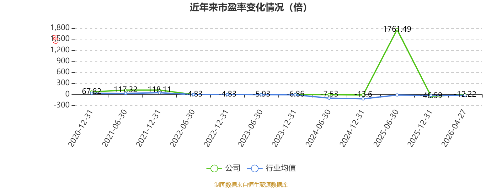市盈率、市净率为负时,不显示当期分位数,会导致折线图中断。
