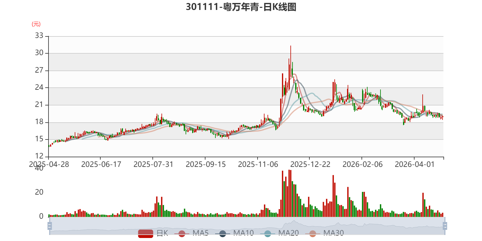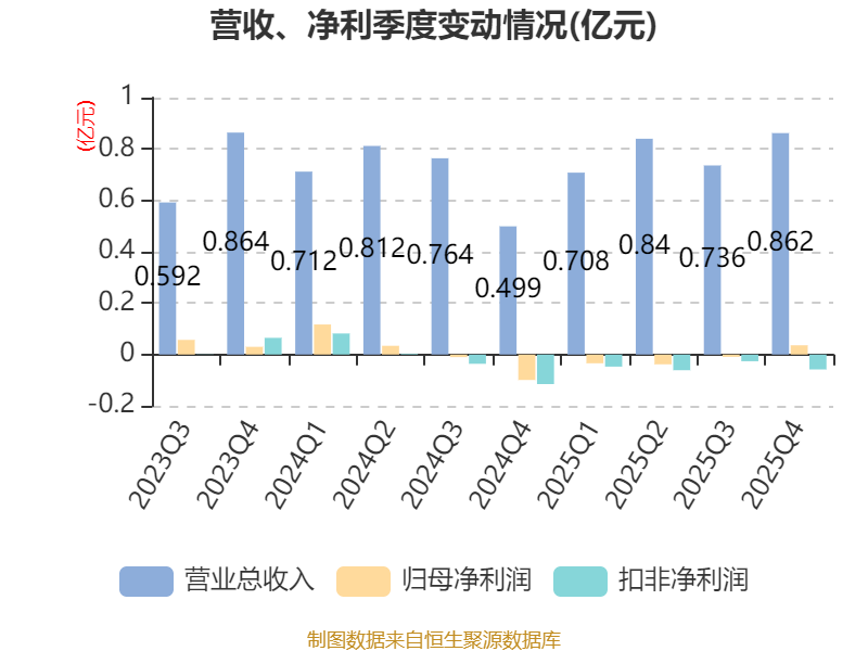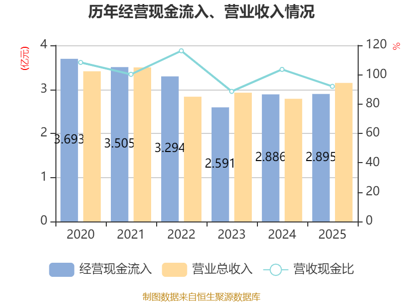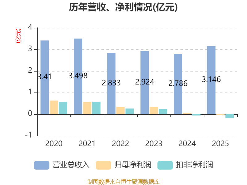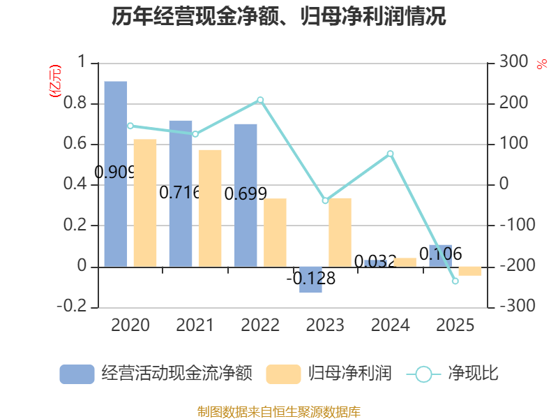 中证智能财讯粤万年青(301111)4月28日披露2025年年度报告。2025年,公司实现营业总收入3.15亿元,同比增长12.92%;归母净利润亏损448.88万元,上年同期盈利416.27万元;扣非净利润亏损1909.77万元,上年同期亏损653.22万元;经营活动产生的现金流量净额为1057.84万元,同比增长229.69%;报告期内,粤万年青基本每股收益为-0.03元,加权平均净资产收益率为-0.59%。公司2025年度分配预案为:拟向全体股东每10股派现0.5元(含税)。
