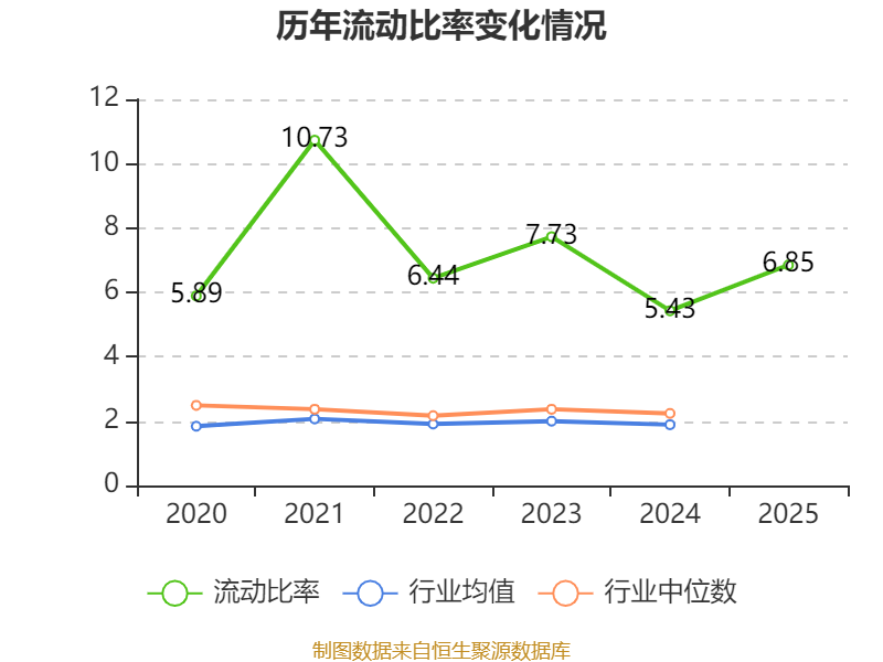 2025年,公司流动比率为6.85,速动比率为6.1。