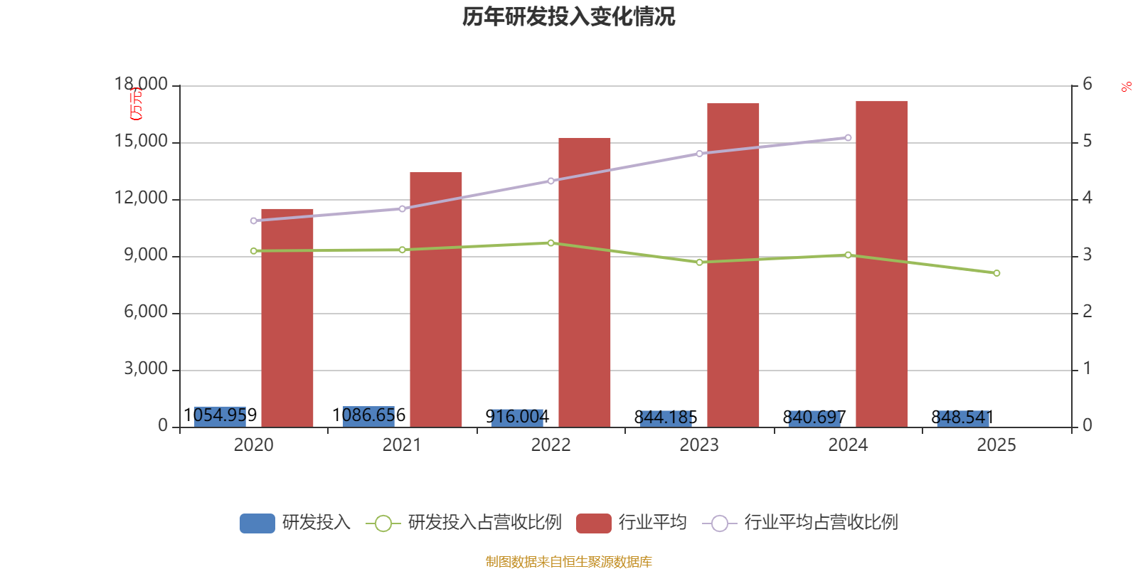 2025年全年,公司研发投入金额为848.54万元,同比增长0.93%;研发投入占营业收入比例为2.7%,相比上年同期下降0.32个百分点。此外,公司全年研发投入资本化率为0%。