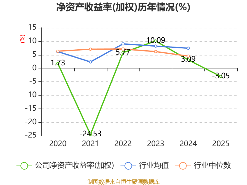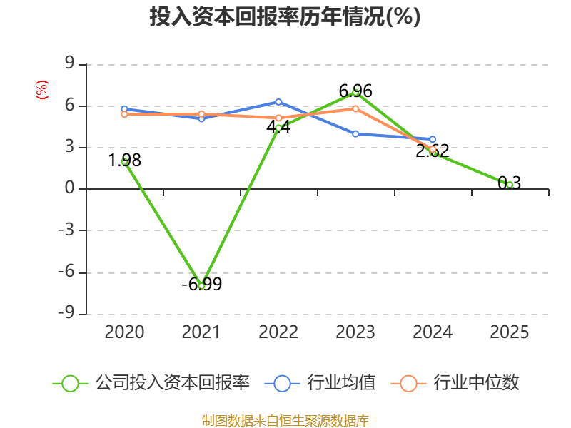 数据显示,2025年公司加权平均净资产收益率为-3.05%,较上年同期下降6.14个百分点。公司2025年投入资本回报率为0.3%,较上年同期下降2.32个百分点。