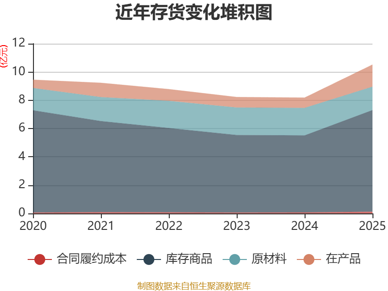 从存货变动来看,截至2025年末,公司存货账面价值为10.52亿元,占净资产的42.6%,较上年末增加2.33亿元。其中,存货跌价准备为1.78亿元,计提比例为14.47%。