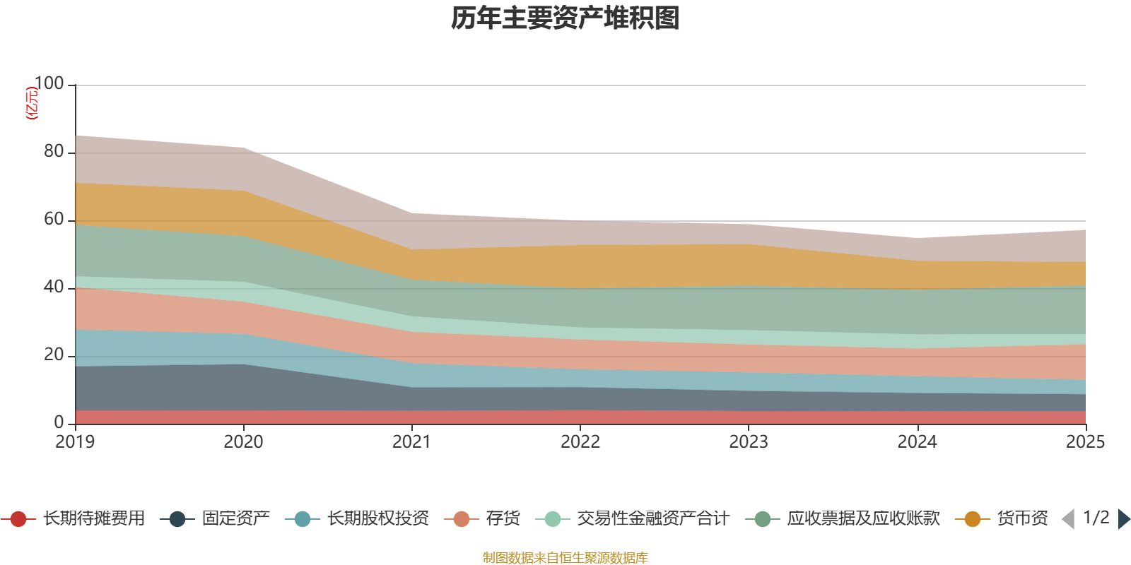 资产重大变化方面,截至2025年末,公司货币资金较上年末减少19.88%,占公司总资产比重下降3.66个百分点;存货较上年末增加28.51%,占公司总资产比重上升3.45个百分点;商誉占公司总资产的2.95%,上年末为0;交易性金融资产合计较上年末减少28.87%,占公司总资产比重下降2.42个百分点。