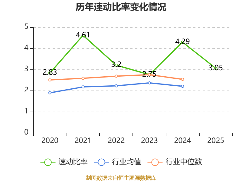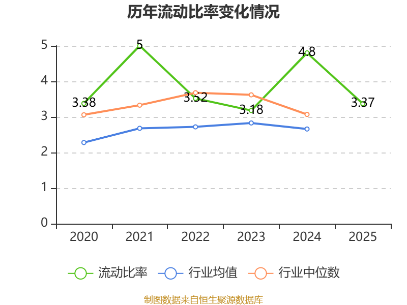 2025年,公司流动比率为3.37,速动比率为3.05。