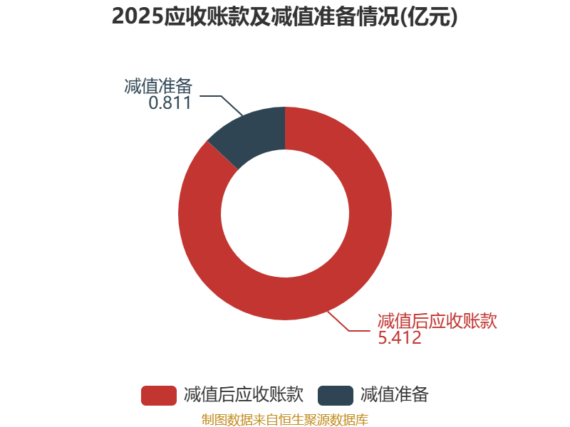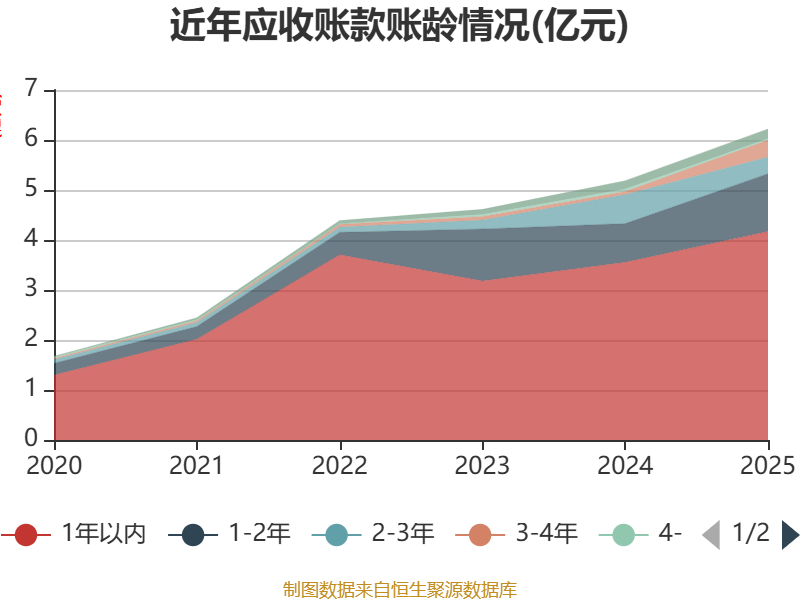 从应收账款账龄结构来看,截至2025年末,公司账龄在1年以内的应收账款余额为4.17亿元,较上年末增长6175.87万元,占应收账款总额比例为67.05%,较上年末下降1.48个百分点。