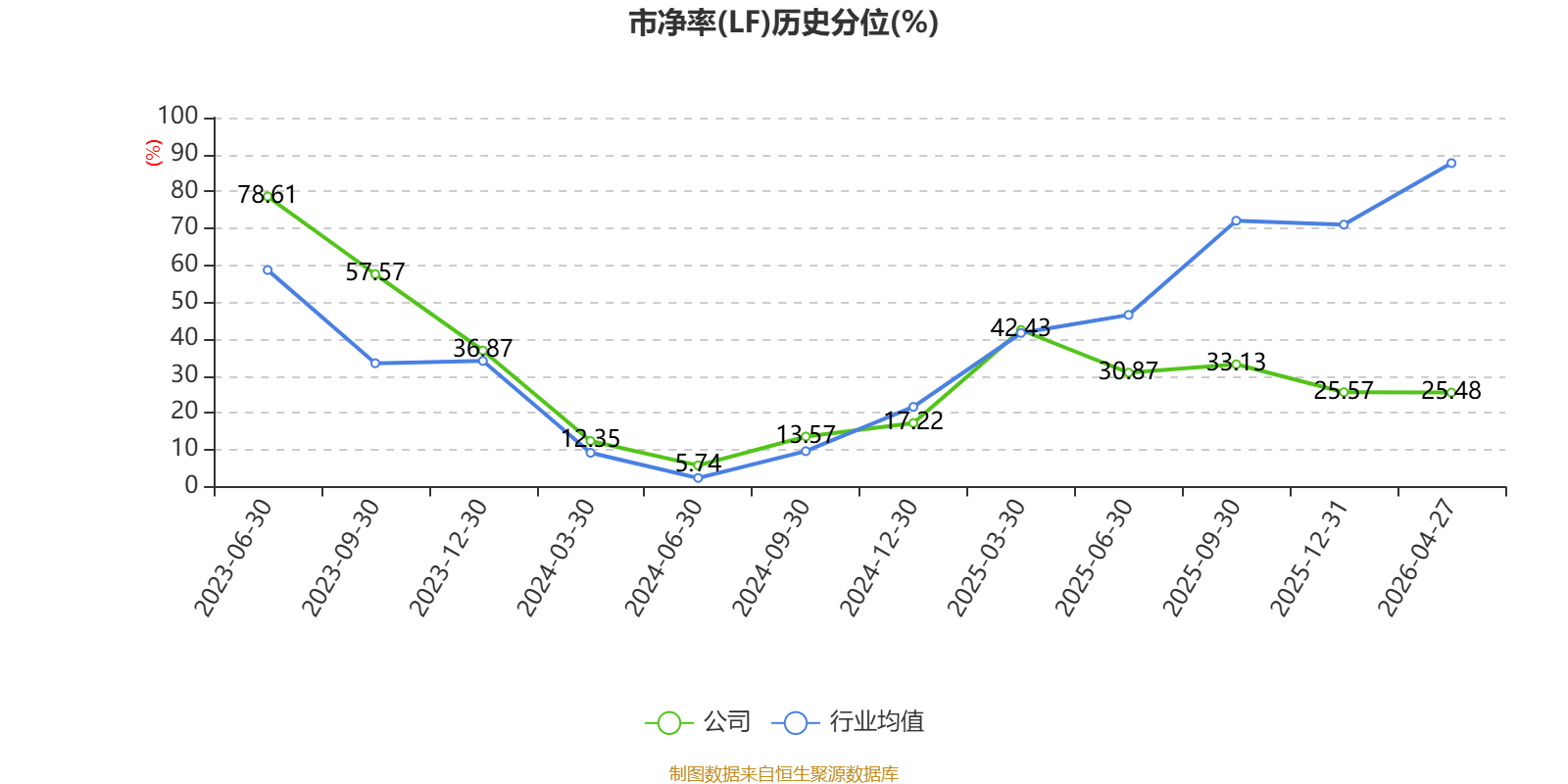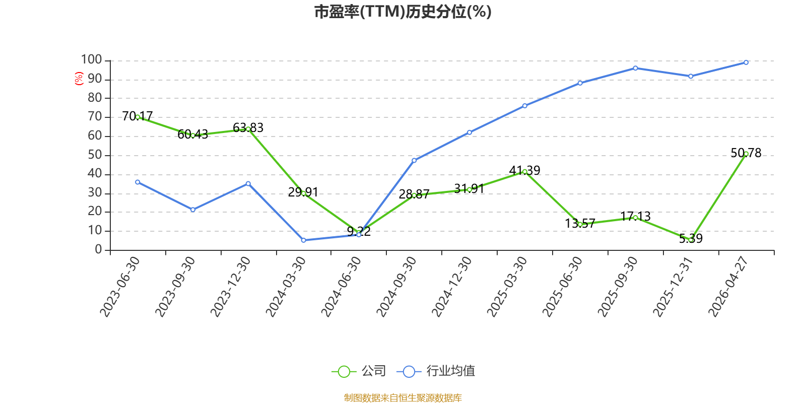 市盈率、市净率为负时,不显示当期分位数,会导致折线图中断。