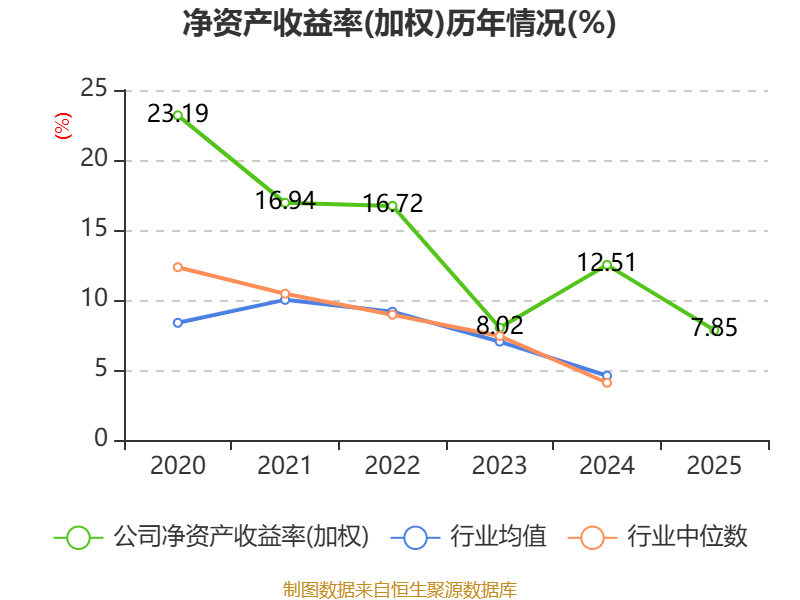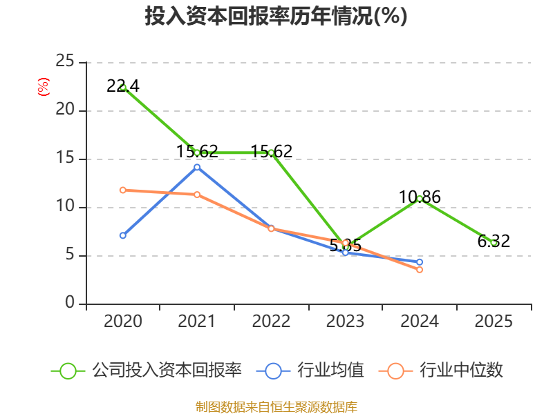 数据显示,2025年公司加权平均净资产收益率为7.85%,较上年同期下降4.66个百分点。公司2025年投入资本回报率为6.32%,较上年同期下降4.54个百分点。