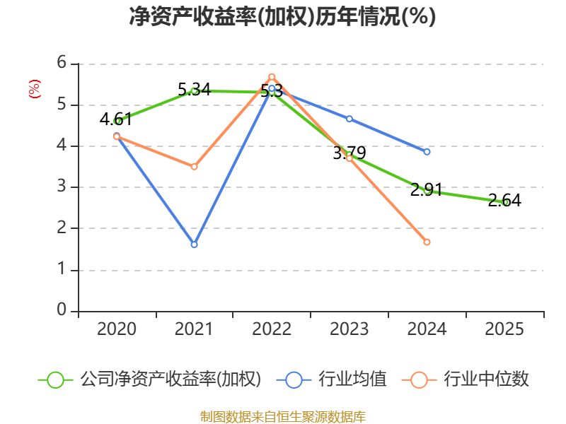 数据显示,2025年公司加权平均净资产收益率为2.64%,较上年同期下降0.27个百分点。公司2025年投入资本回报率为2.89%,较上年同期上升0.01个百分点。