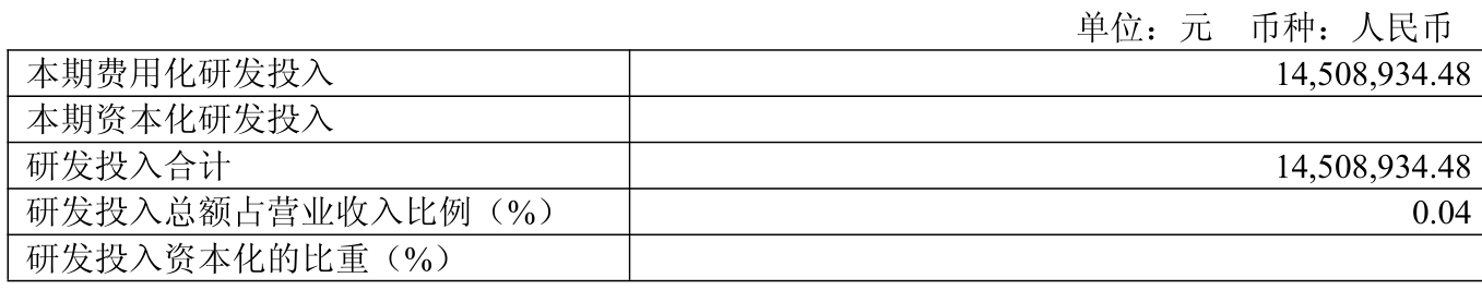 2025年全年,公司研发投入金额为1450.89万元,同比下降9.15%;研发投入占营业收入比例为0.04%,相比上年同期下降0.01个百分点。