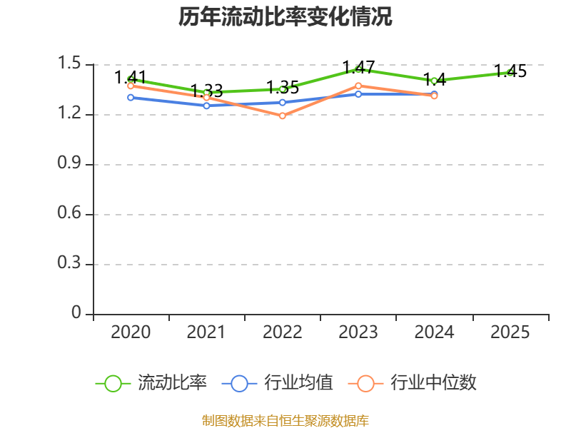2025年,公司流动比率为1.45,速动比率为1.25。