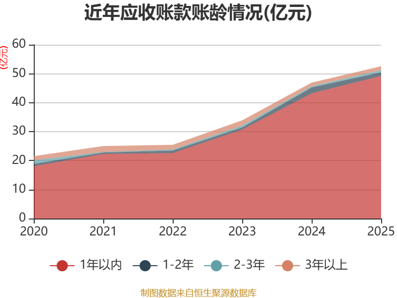 从应收账款账龄结构来看,截至2025年末,公司账龄在1年以内的应收账款余额为49.22亿元,较上年末增长6.01亿元,占应收账款总额比例为93.67%,较上年末上升1.49个百分点。