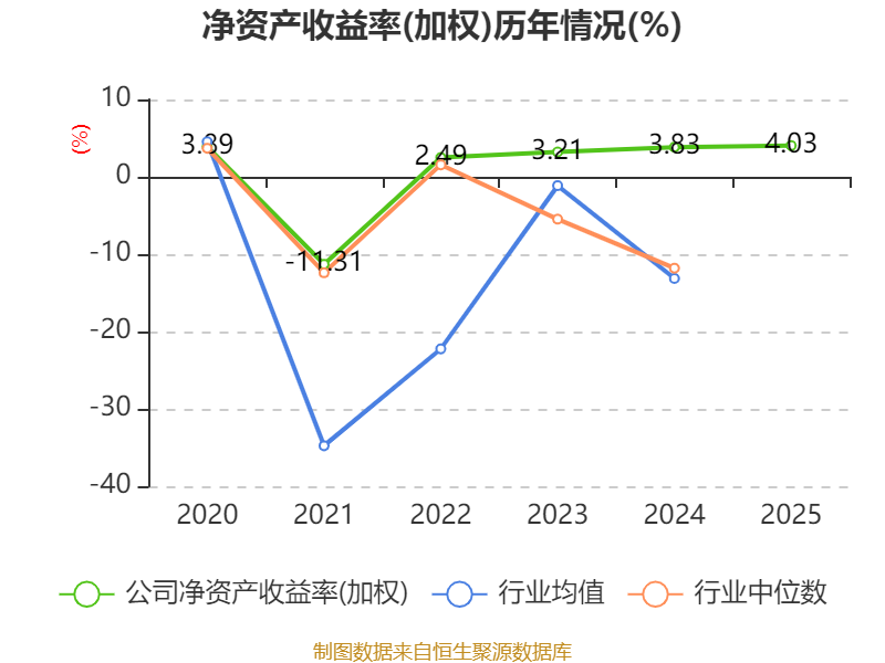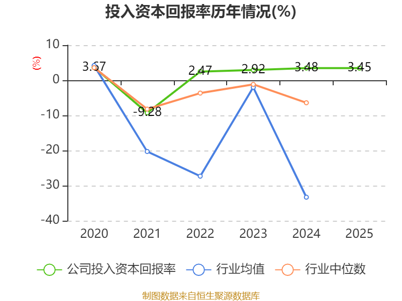 数据显示,2025年公司加权平均净资产收益率为4.03%,较上年同期上升0.2个百分点。公司2025年投入资本回报率为3.45%,较上年同期下降0.03个百分点。
