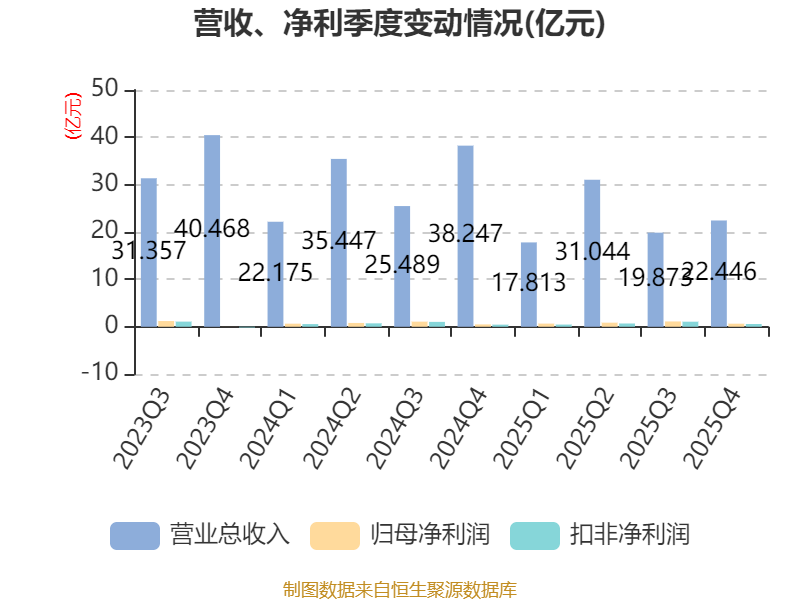 从存货变动来看,截至2025年末,公司存货账面价值为19.35亿元,占净资产的23.43%,较上年末减少2.67亿元。其中,存货跌价准备为1085.54万元,计提比例为0.56%。