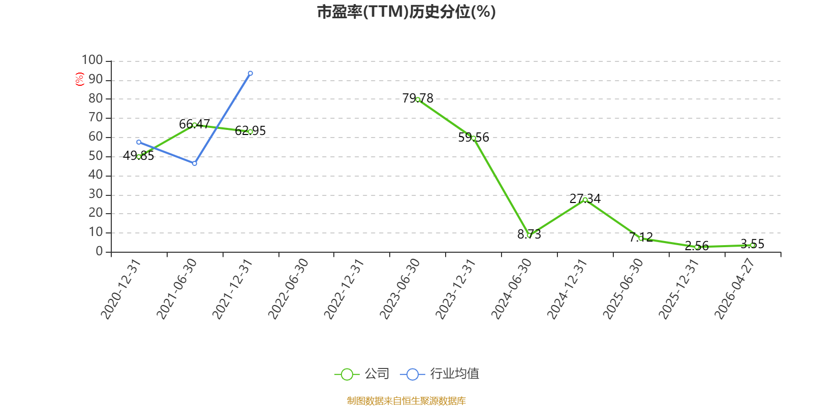 市盈率、市净率为负时,不显示当期分位数,会导致折线图中断。