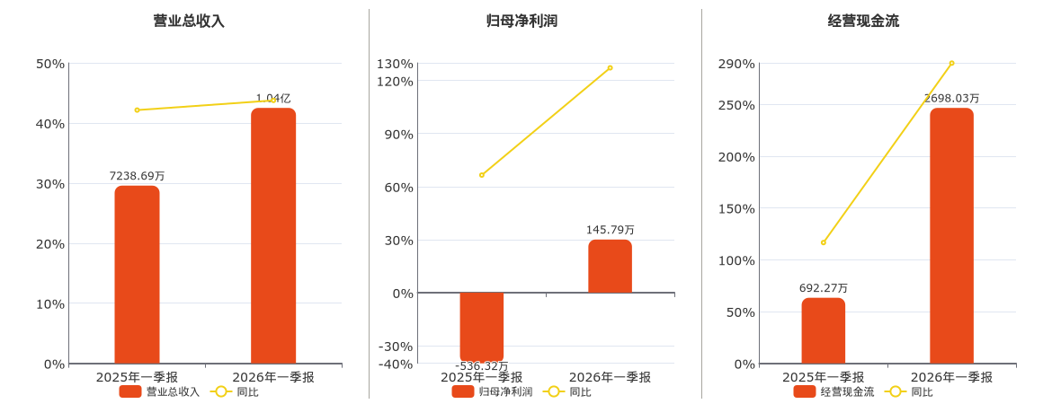 公司截至2026年3月31日,*ST传智营业总收入为1.04亿元,在已披露的同业公司中排名第5。截至2026年3月31日,*ST传智归母净利润为145.79万元,在已披露的同业公司中排名第5。截至2026年3月31日,*ST传智经营活动现金净流入为2698.03万元。