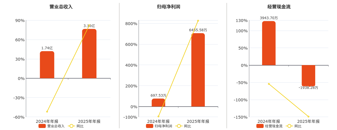 公司营业总收入为3.16亿元,在已披露的同业公司中排名第113。归母净利润为6455.58万元,在已披露的同业公司中排名第74。经营活动现金净流入为-1938.28万元,在已披露的同业公司中排名第110,较去年同报告期经营活动现金净流入减少5881.98万元,同比较去年同期下降149.15%。