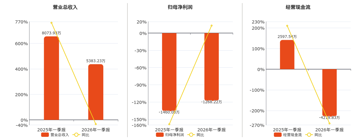 公司截至2026年3月31日,*ST荣控营业总收入为5383.23万元,较去年同报告期营业总收入减少2690.70万元,同比较去年同期下降33.33%。截至2026年3月31日,*ST荣控归母净利润为-1268.22万元。截至2026年3月31日,*ST荣控经营活动现金净流入为-4219.83万元,较去年同报告期经营活动现金净流入减少6817.36万元,同比较去年同期下降262.45%。
