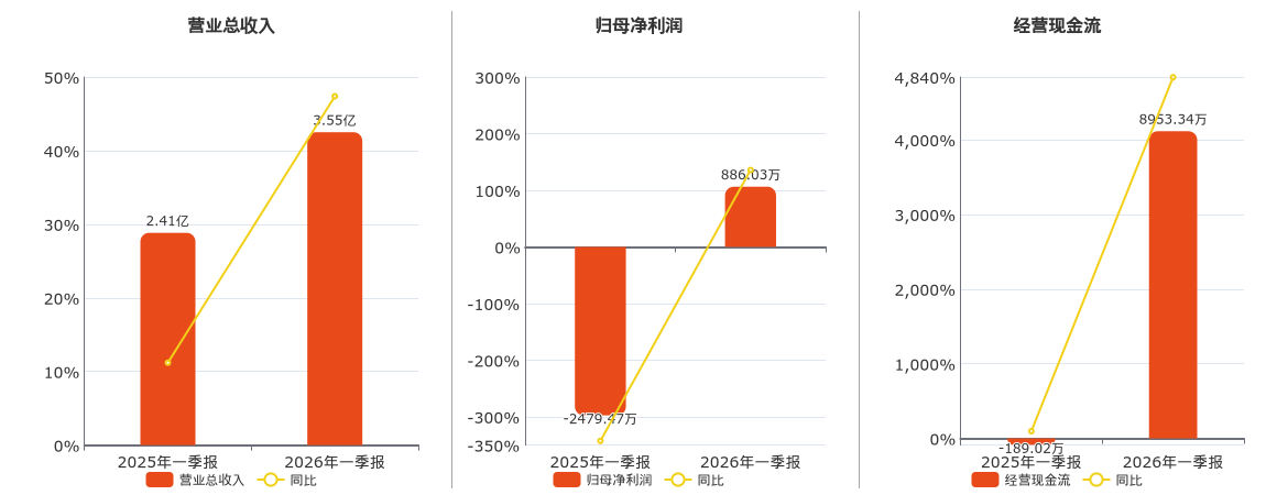 公司营业总收入为3.55亿元。归母净利润为886.03万元,在已披露的同业公司中排名第68。经营活动现金净流入为8953.34万元。