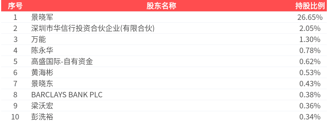 公司股东户数为3.67万户,前十大股东持股数量为2.25亿股,占总股本比例为33.43%,前十大股东持股情况如下: