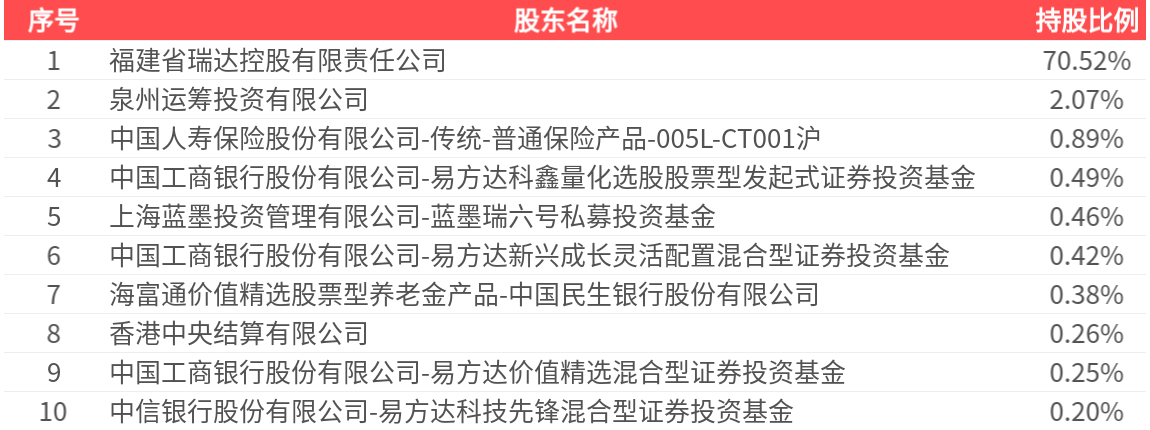 公司股东户数为3.57万户,前十大股东持股数量为3.62亿股,占总股本比例为75.94%,前十大股东持股情况如下: