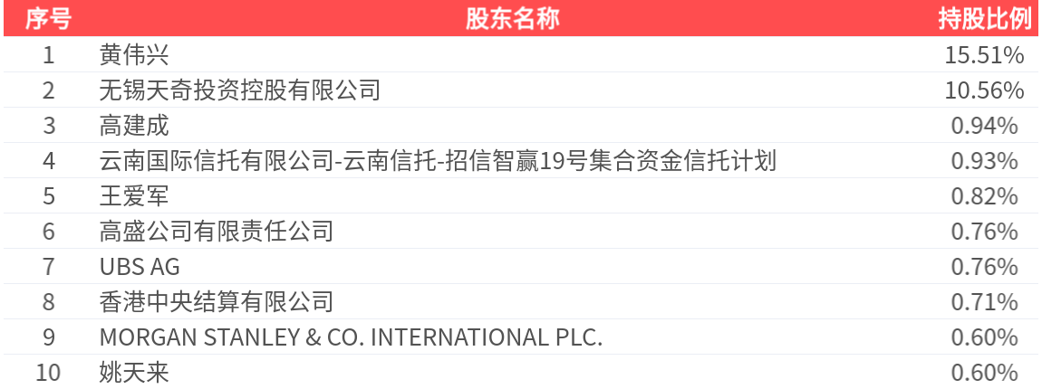 公司股东户数为10.93万户,前十大股东持股数量为1.29亿股,占总股本比例为32.19%,前十大股东持股情况如下: