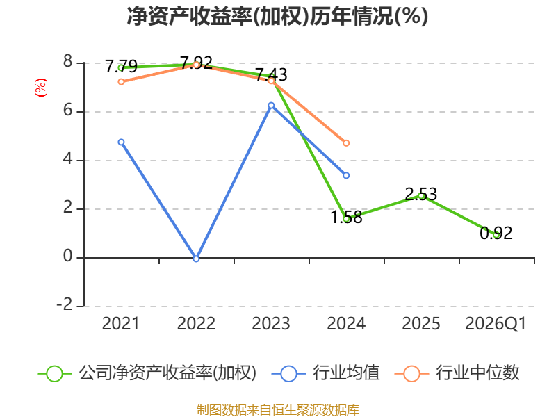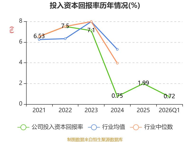 盈利能力方面, 2026年一季度公司加权平均净资产收益率为0.92%,同比上升0.24个百分点。公司2026年第一季度投入资本回报率为0.72%,较上年同期上升0.25个百分点。