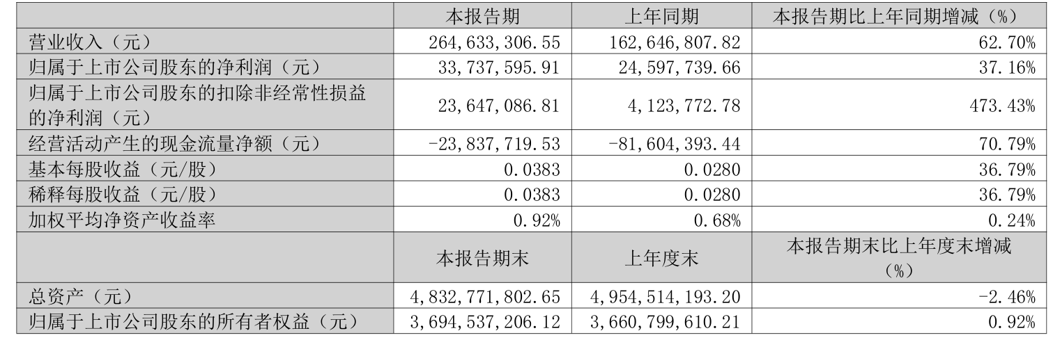 中证智能财讯登海种业(002041)4月28日披露2026年第一季度报告。公司实现营业总收入2.65亿元,同比增长62.70%;归母净利润3373.76万元,同比增长37.16%;扣非净利润2364.71万元,同比增长473.43%;经营活动产生的现金流量净额为-2383.77万元,上年同期为-8160.44万元;报告期内,登海种业基本每股收益为0.0383元,加权平均净资产收益率为0.92%。
