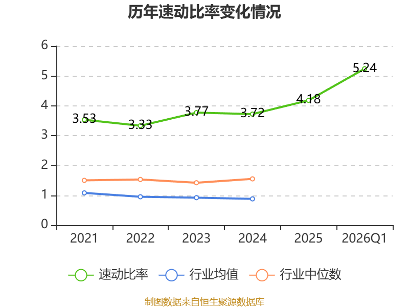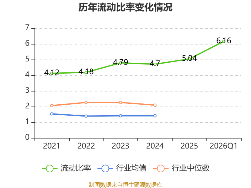 2026年第一季度,公司流动比率为6.16,速动比率为5.24。