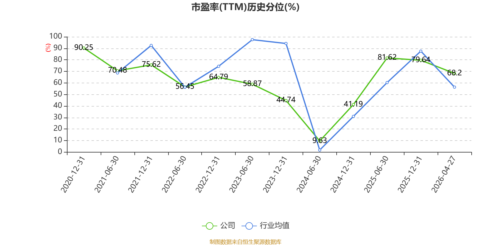 市盈率、市净率为负时,不显示当期分位数,会导致折线图中断。