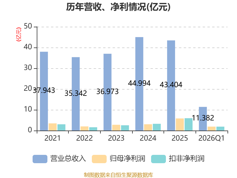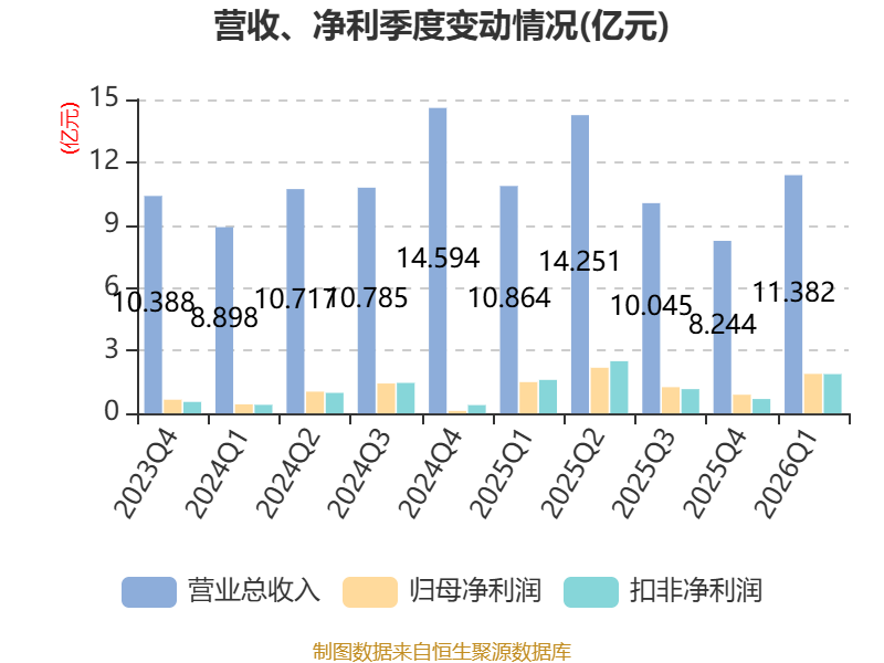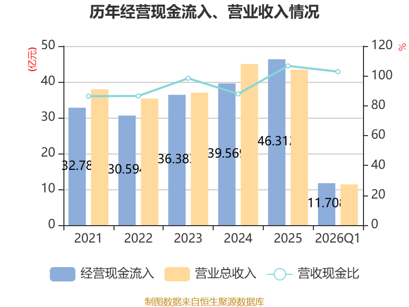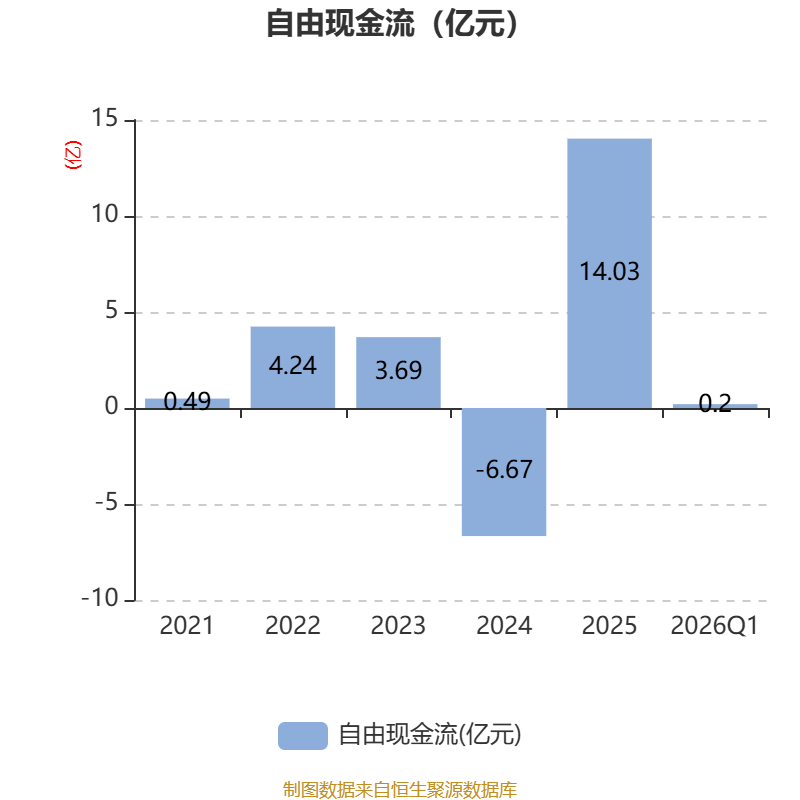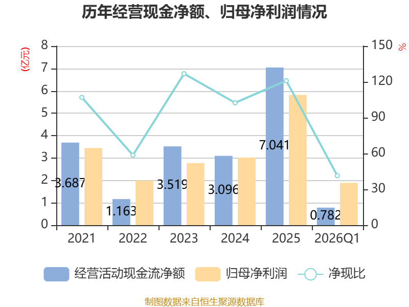 截至2026年一季度末,公司经营活动现金流净额为7824.34万元,同比增加4.61亿元;筹资活动现金流净额-2638.09万元,同比减少2.5亿元;投资活动现金流净额-9348.62万元,上年同期为1.31亿元。