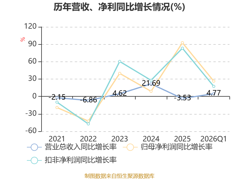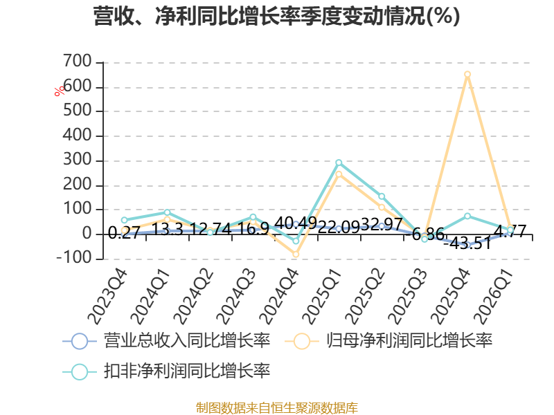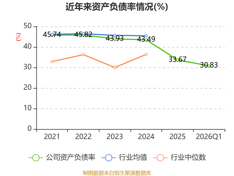 负债重大变化方面,截至2026年一季度末,公司应付票据及应付账款较上年末减少7.62%,占公司总资产比重下降1.23个百分点;应付职工薪酬较上年末减少44.23%,占公司总资产比重下降0.78个百分点;短期借款较上年末减少14.61%,占公司总资产比重下降0.6个百分点;其他流动负债较上年末减少25.95%,占公司总资产比重下降0.48个百分点。