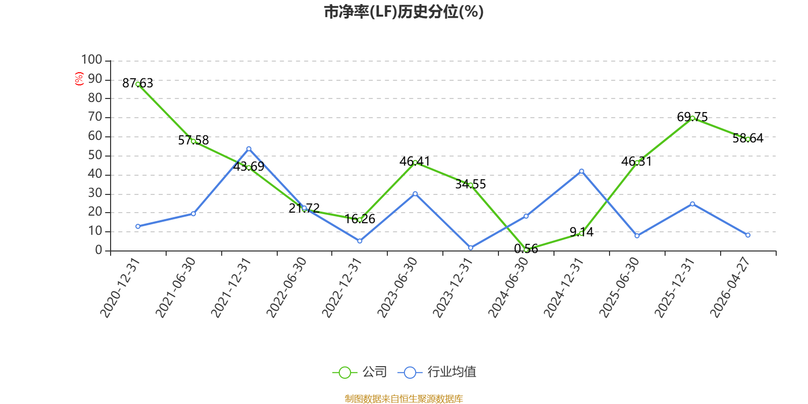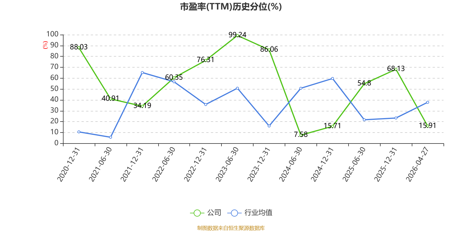市盈率、市净率为负时,不显示当期分位数,会导致折线图中断。