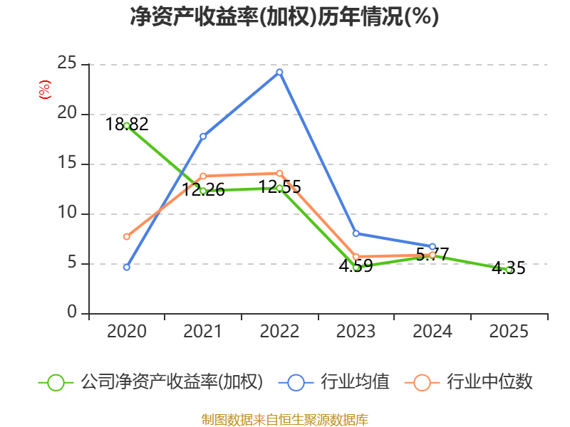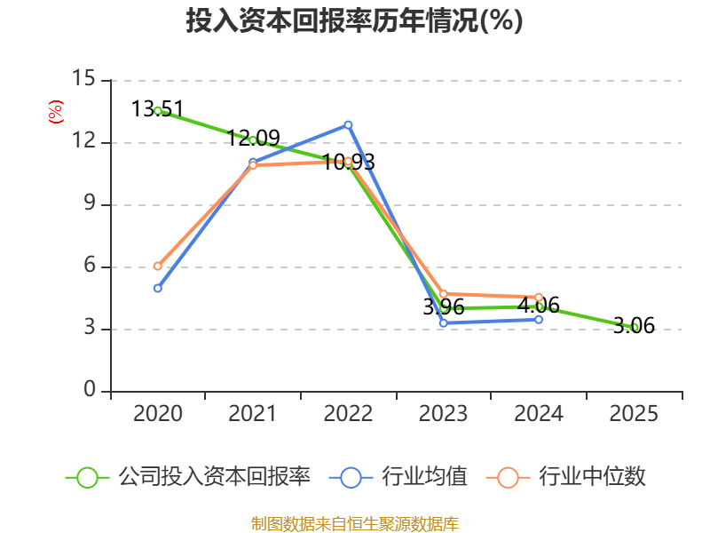 数据显示,2025年公司加权平均净资产收益率为4.35%,较上年同期下降1.42个百分点。公司2025年投入资本回报率为3.06%,较上年同期下降1个百分点。