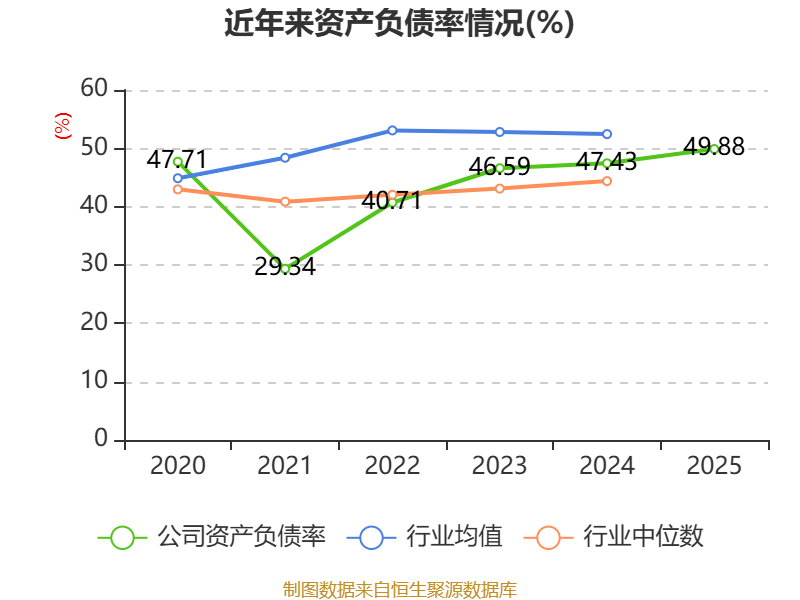 负债重大变化方面,截至2025年末,公司长期借款较上年末增加49.62%,占公司总资产比重上升5.89个百分点;应付票据及应付账款较上年末减少36.77%,占公司总资产比重下降4.94个百分点;一年内到期的非流动负债较上年末减少29.69%,占公司总资产比重下降2.78个百分点;应付债券占公司总资产的2.5%,上年末为0。