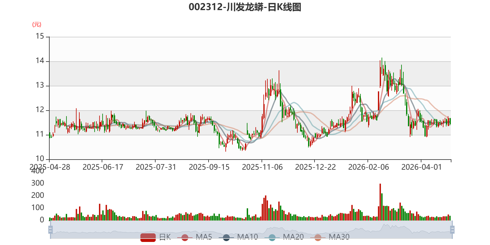 值得注意的是,中登公司数据显示,截至2026年4月24日,川发龙蟒12.84%股份处于质押状态。年报显示,第一大股东四川省先进材料产业投资集团有限公司质押2.42亿股公司股份,占其全部持股的49.93%。