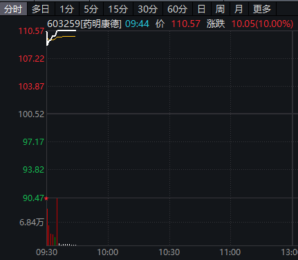 创新药、CRO概念股盘初拉升,3000亿元龙头药明康德(603259)强势涨停。