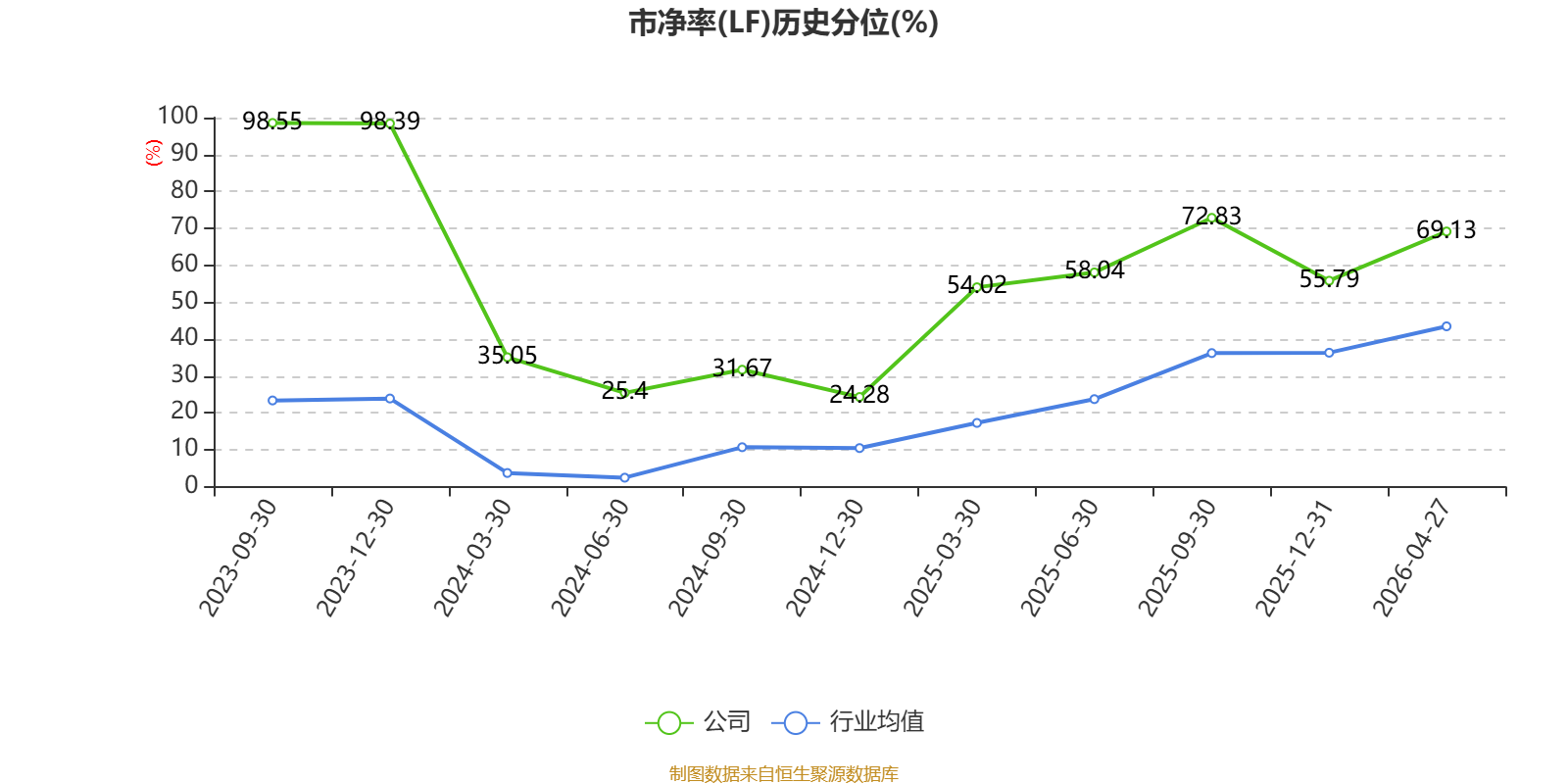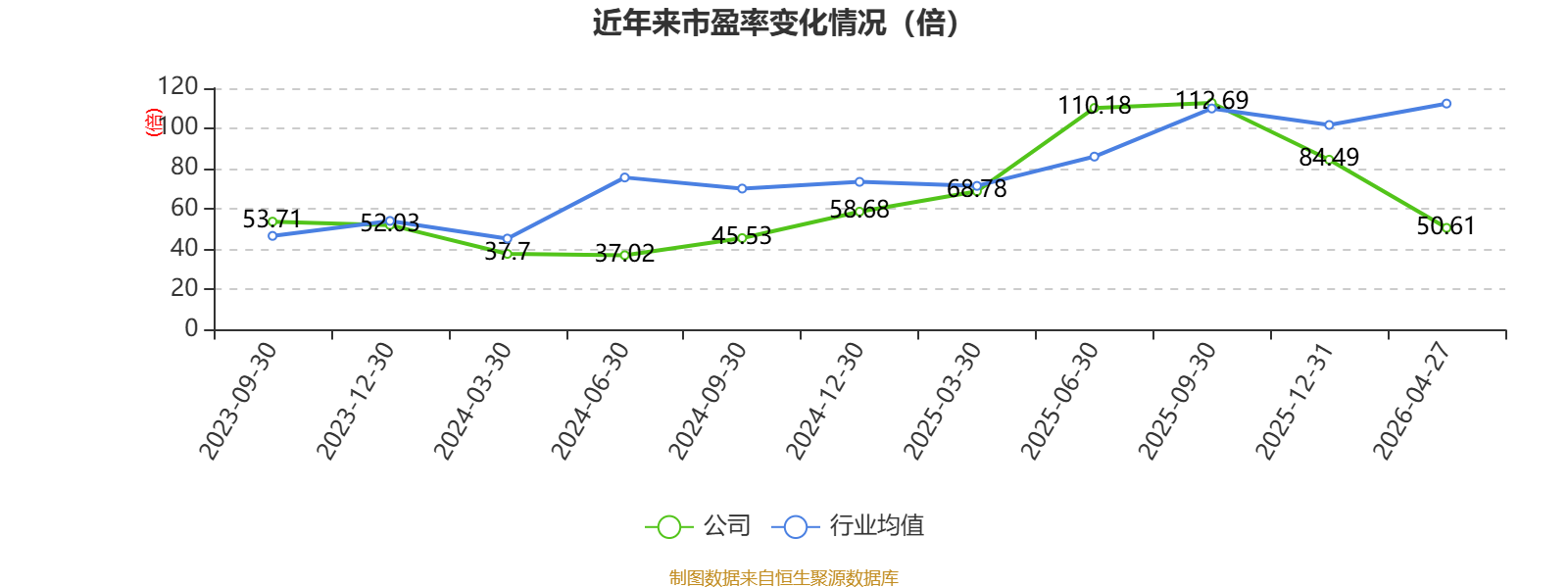 以4月27日收盘价计算,恒兴新材目前市盈率(TTM)约为50.61倍,市净率(LF)约2.06倍,市销率(TTM)约3.99倍。
