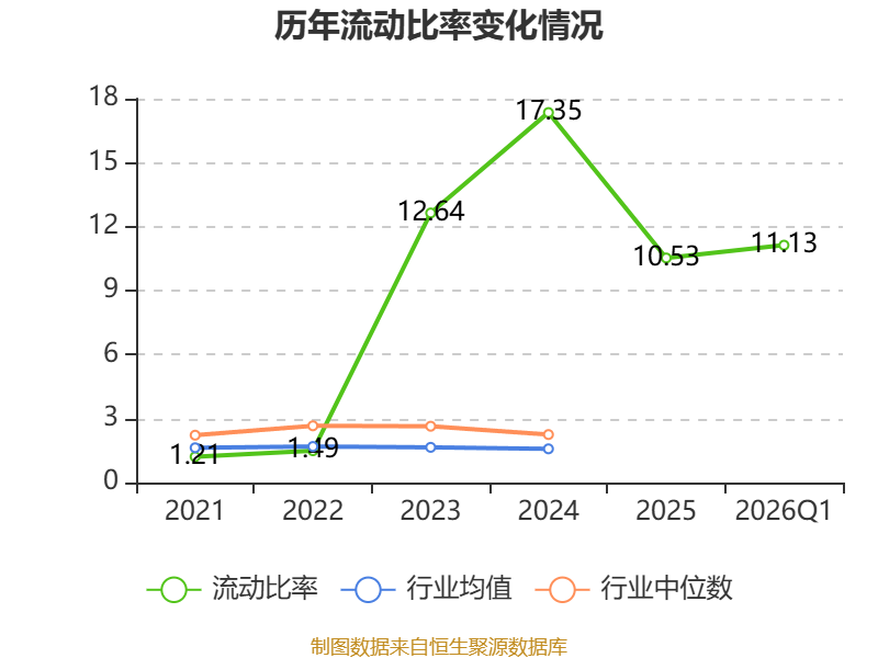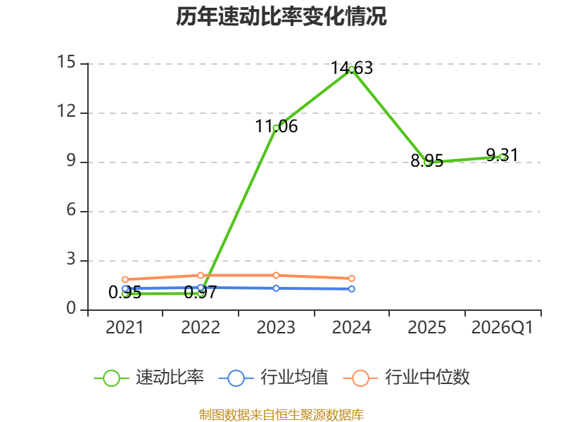 2026年第一季度,公司流动比率为11.13,速动比率为9.31。