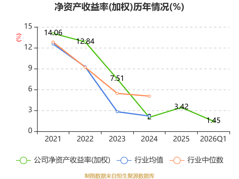 盈利能力方面, 2026年一季度公司加权平均净资产收益率为1.45%,同比上升0.71个百分点。公司2026年第一季度投入资本回报率为1.52%,较上年同期上升0.79个百分点。