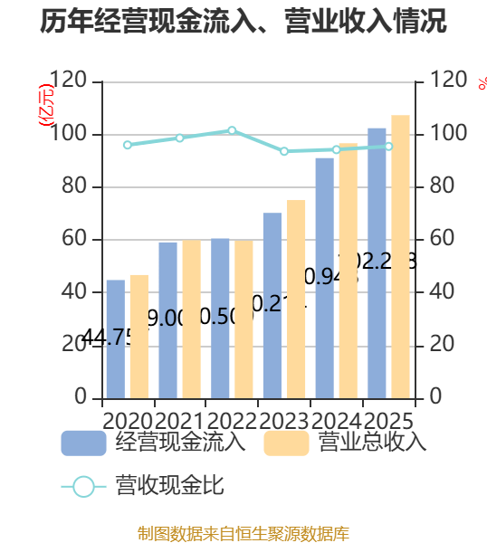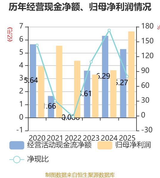 截至2025年,公司经营活动现金流净额为5.27亿元,同比下降16.27%;筹资活动现金流净额1.44亿元,同比减少2.36亿元;投资活动现金流净额-5.45亿元,上年同期为-10.94亿元。