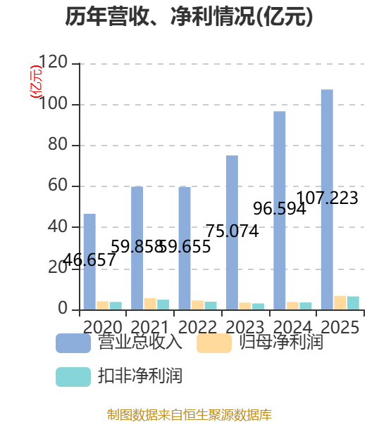 中证智能财讯和而泰(002402)4月28日披露2025年年度报告。2025年,公司实现营业总收入107.22亿元,同比增长11.00%;归母净利润6.63亿元,同比增长82.12%;扣非净利润6.36亿元,同比增长85.82%;经营活动产生的现金流量净额为5.27亿元,同比下降16.27%;报告期内,和而泰基本每股收益为0.723元,加权平均净资产收益率为11.64%。公司2025年度分配预案为:拟向全体股东每10股派现2元(含税)。