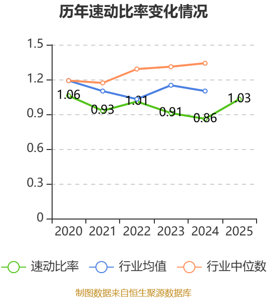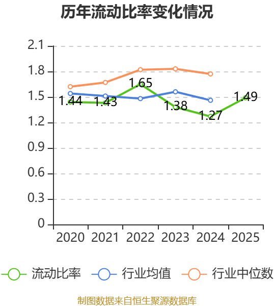 2025年,公司流动比率为1.49,速动比率为1.03。
