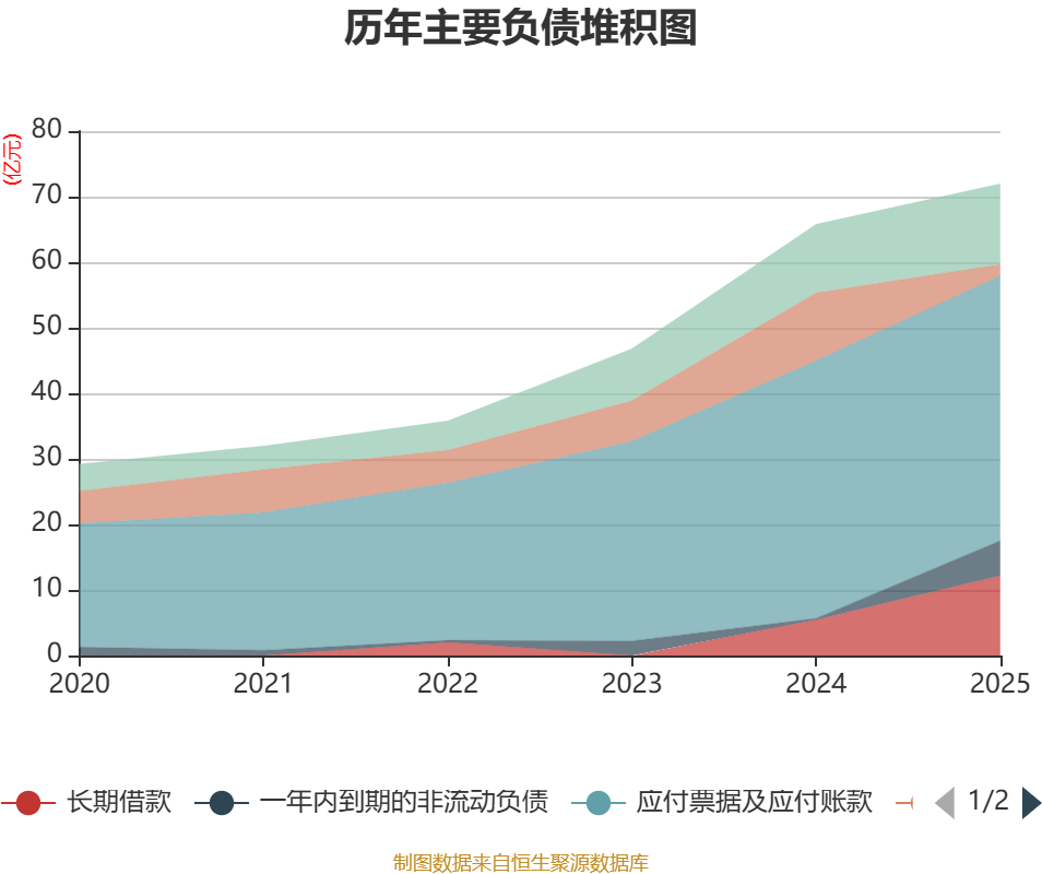 负债重大变化方面,截至2025年末,公司短期借款较上年末减少82.9%,占公司总资产比重下降7.43个百分点;应付票据及应付账款较上年末增加2.73%,占公司总资产比重下降5.3个百分点;长期借款较上年末增加122.73%,占公司总资产比重上升3.73个百分点;一年内到期的非流动负债较上年末增加2223.93%,占公司总资产比重上升3.47个百分点。