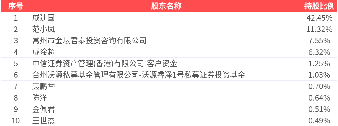 公司股东户数为5886户,前十大股东持股数量为7660.94万股,占总股本比例为72.27%,前十大股东持股情况如下: