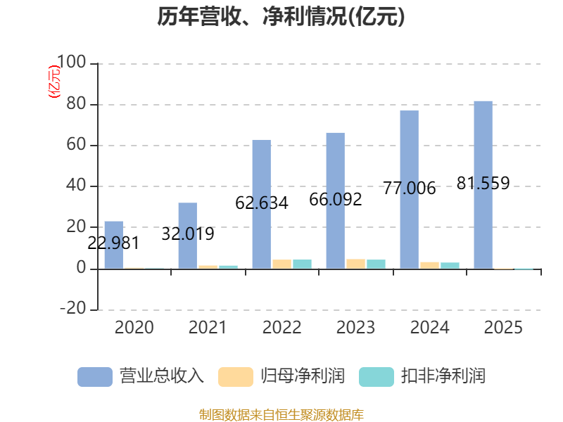中证智能财讯宇新股份(002986)4月28日披露2025年年度报告。2025年,公司实现营业总收入81.56亿元,同比增长5.91%;归母净利润亏损3919.26万元,上年同期盈利3.07亿元;扣非净利润亏损6347.05万元,上年同期盈利2.88亿元;经营活动产生的现金流量净额为1.91亿元,同比增长24.11%;报告期内,宇新股份基本每股收益为-0.1017元,加权平均净资产收益率为-0.99%。