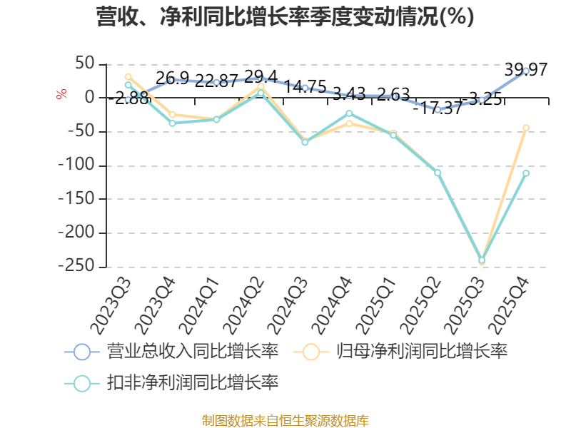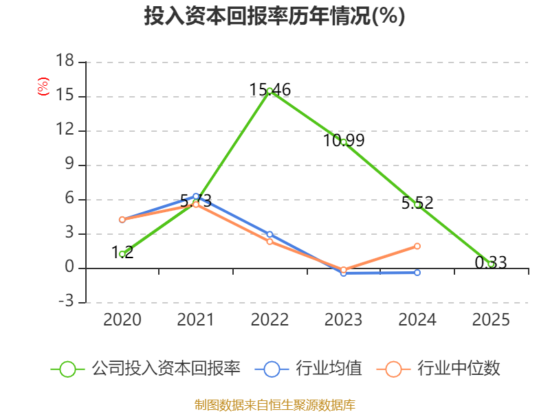 数据显示,2025年公司加权平均净资产收益率为-0.99%,较上年同期下降8.85个百分点。公司2025年投入资本回报率为0.33%,较上年同期下降5.19个百分点。