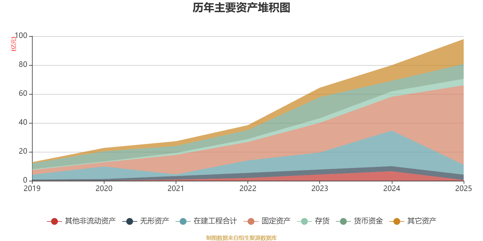 资产重大变化方面,截至2025年末,公司固定资产较上年末增加134.91%,占公司总资产比重上升26.83个百分点;在建工程合计较上年末减少72.19%,占公司总资产比重下降23.84个百分点;其他非流动资产较上年末减少91.96%,占公司总资产比重下降7.68个百分点;货币资金较上年末增加40.66%,占公司总资产比重上升1.35个百分点。