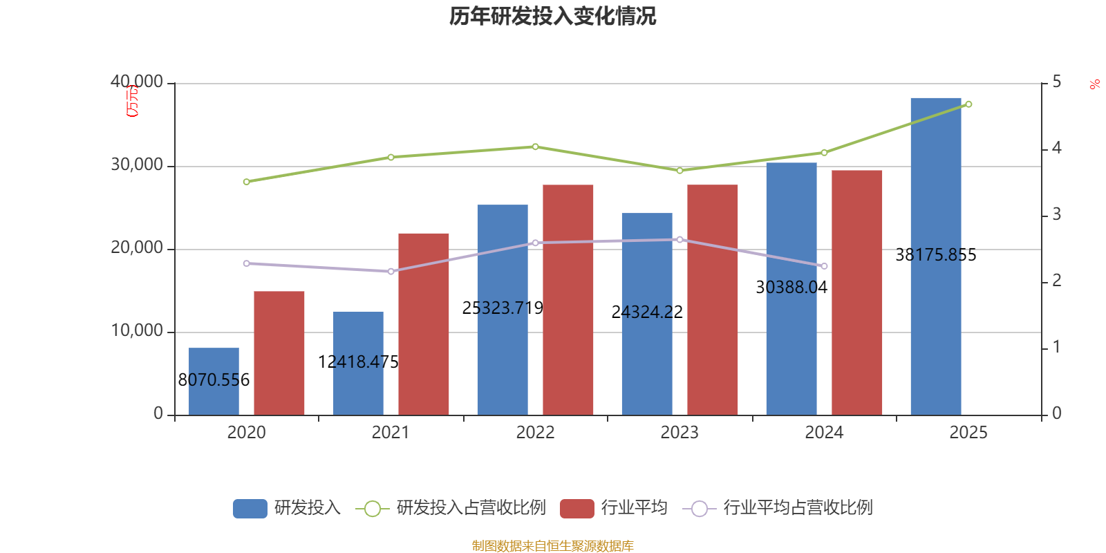 2025年全年,公司研发投入金额为3.82亿元,同比增长25.63%;研发投入占营业收入比例为4.68%,相比上年同期上升0.73个百分点。此外,公司全年研发投入资本化率为0%。