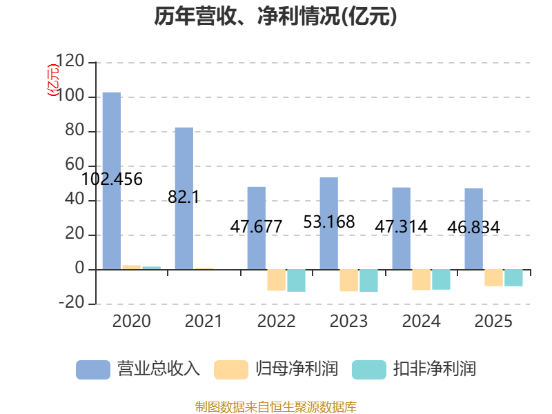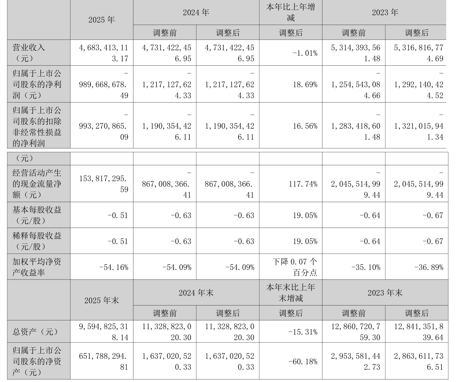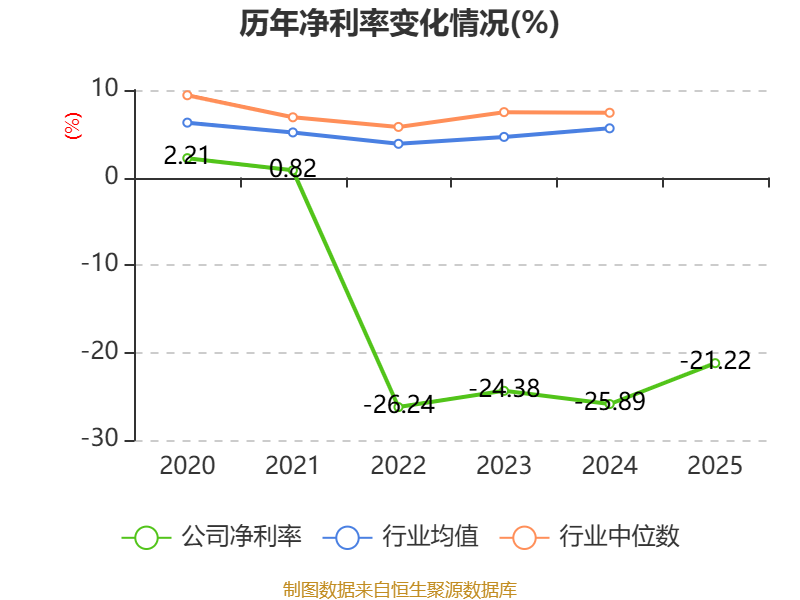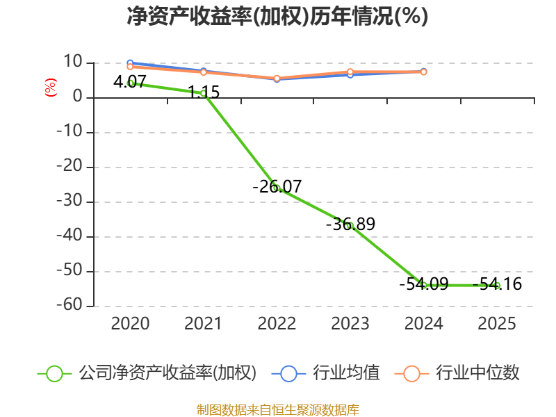 数据显示,2025年公司加权平均净资产收益率为-54.16%,较上年同期下降0.07个百分点。公司2025年投入资本回报率为-11.93%,较上年同期上升1.74个百分点。
