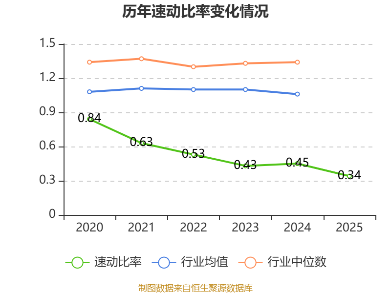 2025年,公司流动比率为0.51,速动比率为0.34。